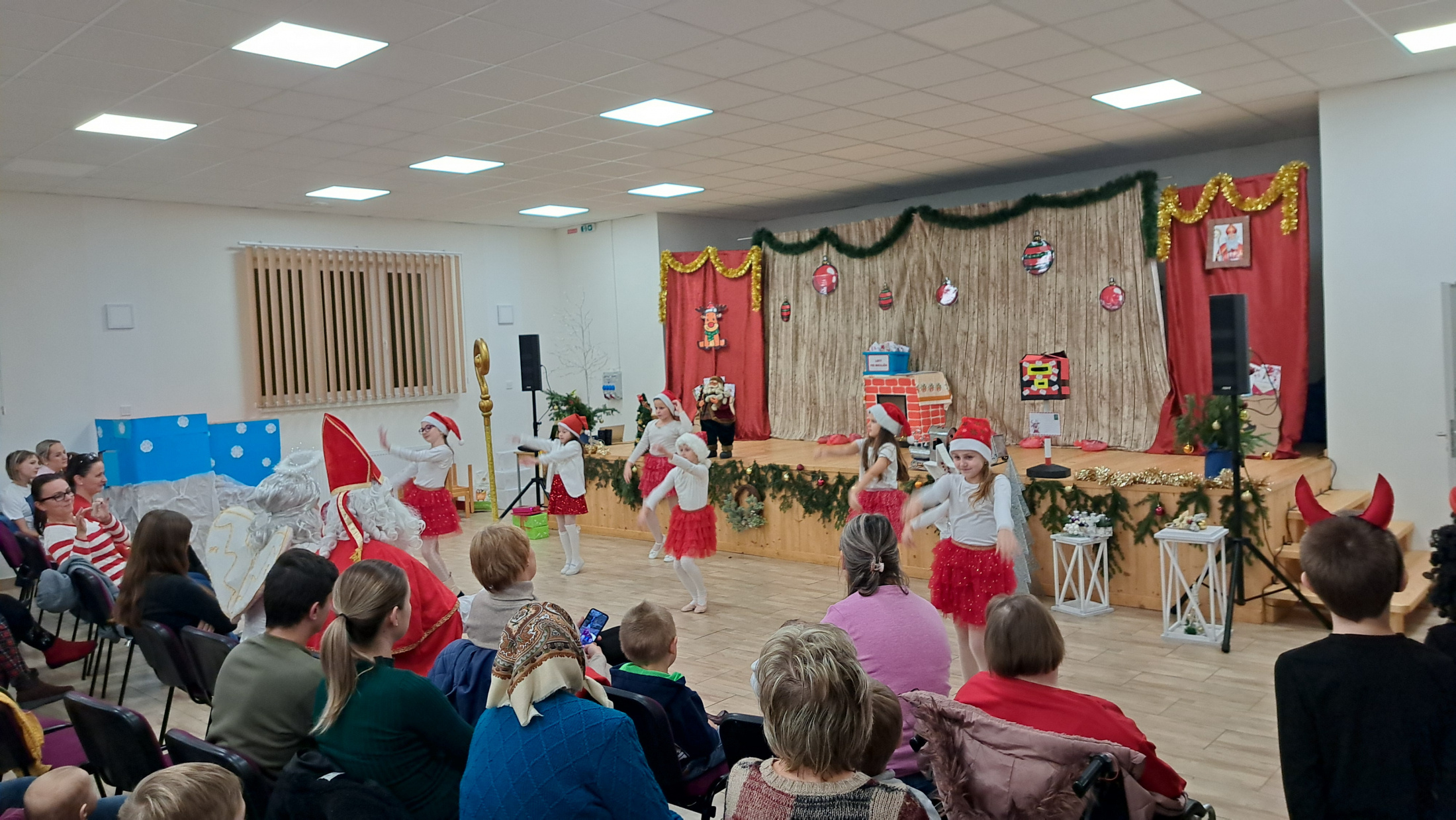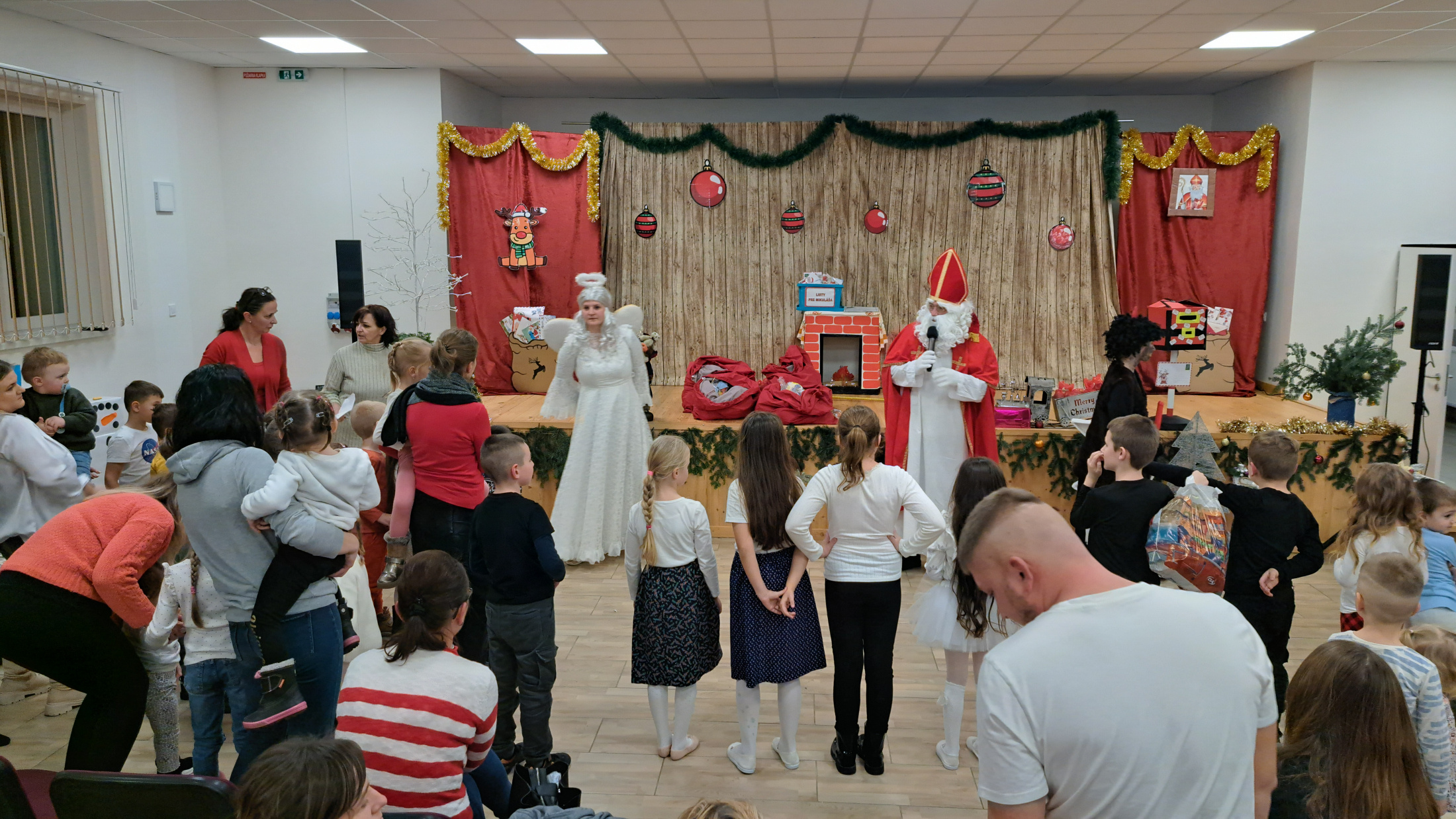 6. decembra na Mikuláša, sme v našej obci pripravili slávnostné rozsvietenie Vianočného stromčeka, pred budovou Kultúrneho domu. Pred samotným rozsvietením vystúpili deti z Materskej i Základnej školy zaspievaním kolied. Po rozsvietení stromčeka, v sále Kultúrneho domu bolo pripravené krátke kultúrne vystúpenie animačného tímu a všetkých prítomných, vrátane Mikuláša, najviac potešili vystúpenia našich škôlkarov a žiakov Základnej školy. Na záver prítomným deťom Mikuláš rozdal darčeky.