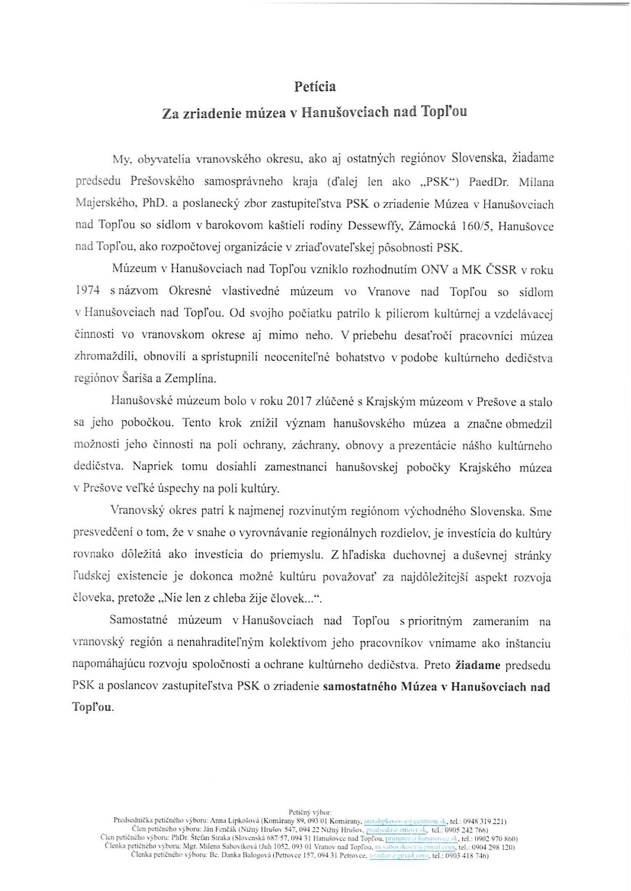 Obec Petrovce týmto oznamuje občanom, že petíciu je možné podpísať na podateľni Obecného úradu v Petrovciach.